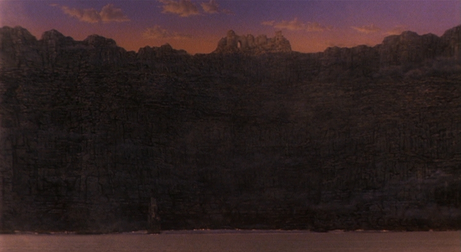 | Screenshot from the actual movie. They added the bit up top to look more...cliffy, I guess. |